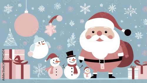 Merry Christmas wishes graphic design 2d and 3d illustration template. Merry Christmas images with snowmen and Santa Claus.