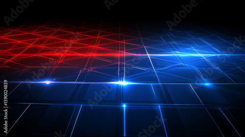 mesmerizing abstract cityscape featuring dynamic red and blue light patterns