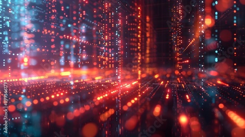 Mesmerizing Abstract Digital Network with Floating Holograms and Neon Lights