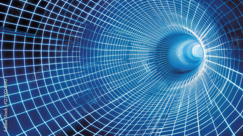 mesmerizing blue tunnel with grid pattern, creating sense of depth and movement. glowing lines enhance futuristic feel, evoking sense of exploration and wonder