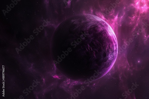 Mesmerizing digital artwork of a glowing purple planet with a starry background creating a fantastical and otherworldly visual composition