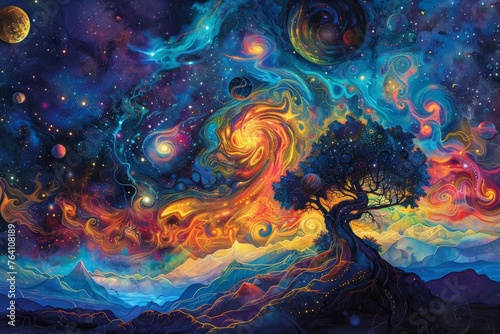 mesmerizing display of cosmic beauty as planets, stars, and galaxies dances..