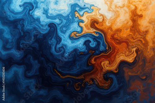 Mesmerizing Ink Swirls: Close-Up Experimental Photography of Indigo & Bronze