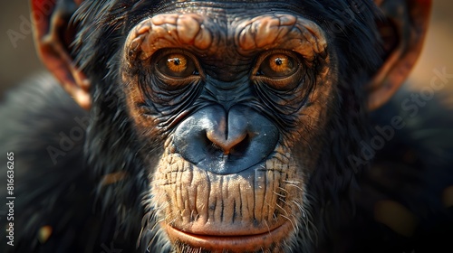Mesmerizing Primate Portrait:Captivating Close-Up of a Majestic Chimpanzee's Expressive Features