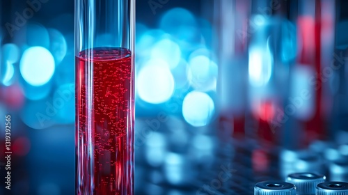 Mesmerizing Swirling Red Liquid in Glowing Blue Research Laboratory Backdrop