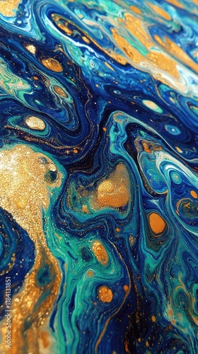 Mesmerizing Teal, Gold, and Black Ink Swirls: Stunning Marble Texture for Creative Designs