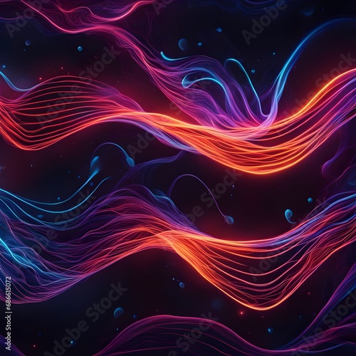 Mesmerizing Waves of Neon Light: An Abstract Artwork with a Glowing Space Background, Intricate Design & Stunning 8K Resolution HD Wallpaper Generative AI