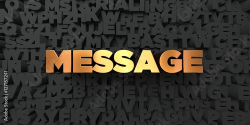 Message - Gold text on black background - 3D rendered royalty free stock picture. This image can be used for an online website banner ad or a print postcard.