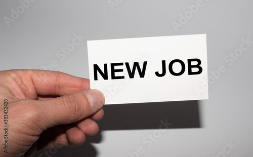 Message on the card NEW JOB, in hands of businessman.