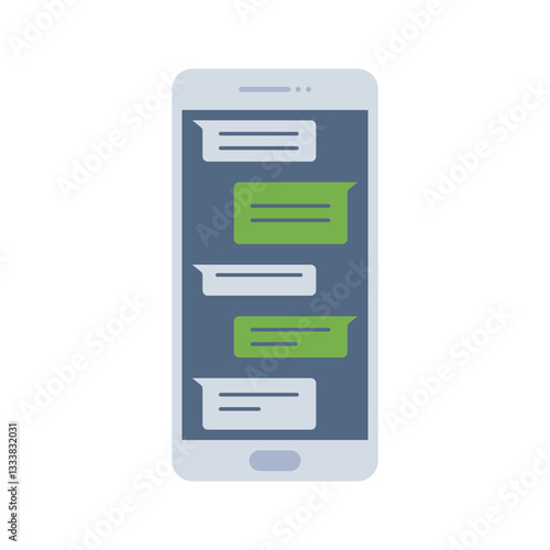 Messaging App Flat design style, smartphone screen with chat bubbles, depicting instant messaging, great for social media, online communication, and mobile technology illustrations.