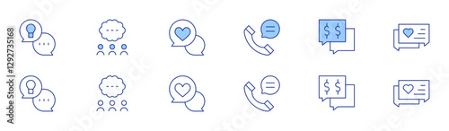 Messaging icon set in two styles, Duotone and Thin Line style. Editable stroke. conversation, chat, advice, negotiation