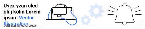 Messenger bag with strap, gears, and ringing notification bell. Ideal for website banners, app icons, user interface, education, e-commerce, productivity tools, and notifications. Landing page