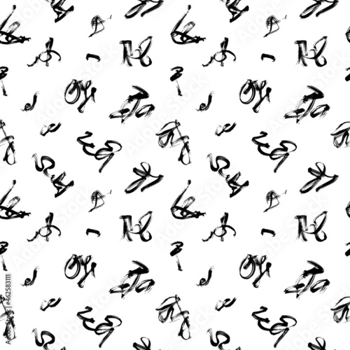 Messy scribbles vector seamless pattern. Hand drawn wavy and swirled brush strokes. Organic style texture. Freehand line scribbles, doodle pattern. Chinese black symbols on white background