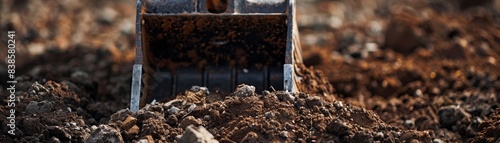 Metal bucket teeth of backhoe digging soil