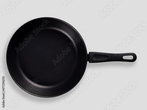 Metal frying pan with non-stick coating for cooking and serving food for all types of electric and gas stoves isolated on a white background