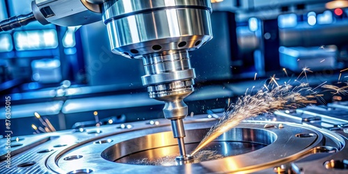 Metal Machining CNC Mill with Sparks, Close-up , CNC , metal machining , sparks , industry