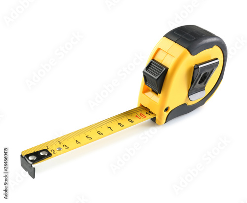 Metal measuring tape on white background. Construction tool