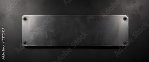 Metal plate with industrial design elements on black brushed metallic background, technology, gear