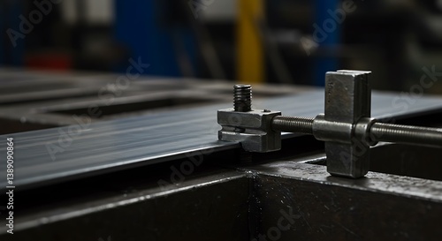 Metal Sheet Being Clamped Down During Industrial Manufacturing Process Closeup