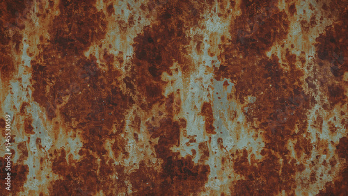 Metal texture with heavily rusted, peeling paint revealing aged beauty, perfect for backgrounds, industrial concepts, or textures in design projects.