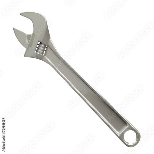 Metallic Adjustable Wrench Isolated on Transparent Background Detailed Close Up Shot