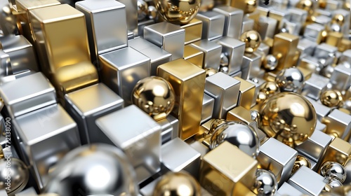 Metallic Cubes and Spheres: Futuristic 3D Abstract Background - Hand Edited Generative AI