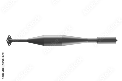 Metallic Exhaust Pipe Muffler for a Two-Wheeled Vehicle, Silencer Unit for a Small Displacement Motorcycle or Scooter, MOTORBIKE MUFFLER, Aftermarket, Simple Gray Noise Reduction on a PNG Transparent