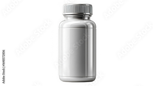 Metallic finish white supplement jar with black cap and blank label suitable for health product branding