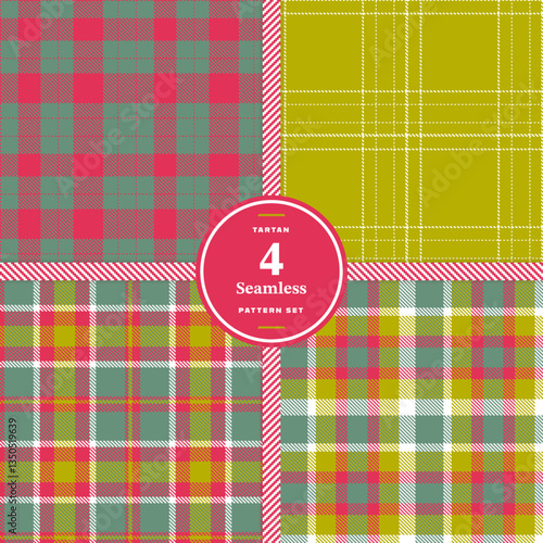 Metallic Gold and Deep Scarlet Seamless Tartan Fabric Design Set of 4
