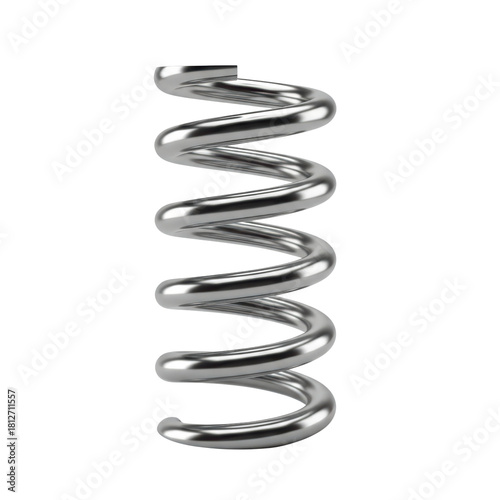 Metallic helical compression spring on transparent background