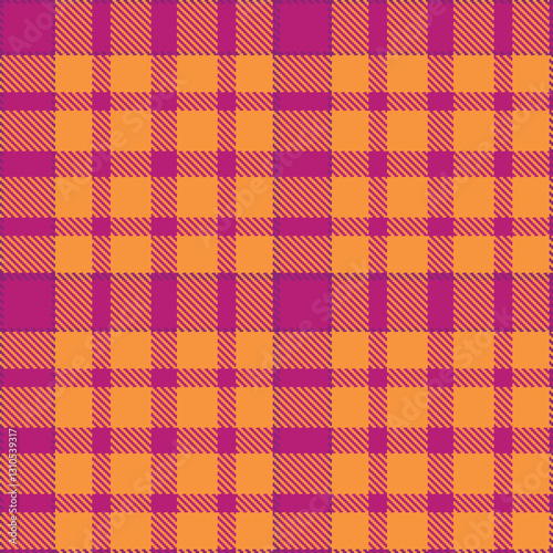 Metallic Magenta and Bright Pastel Orange Seamless Tartan Textile Design