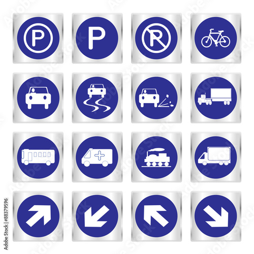Metallic set blue transport and road signs