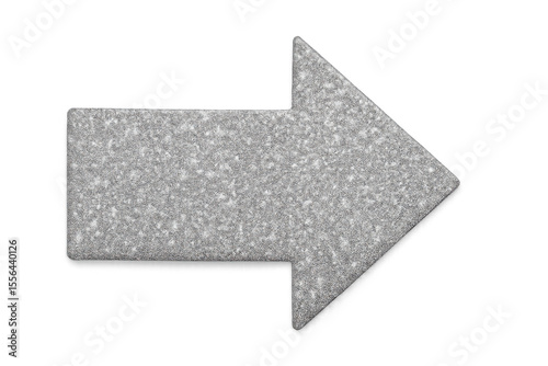 Metallic silver glitter arrow directing rightward, transparent background emphasizing navigation or key content highlighting