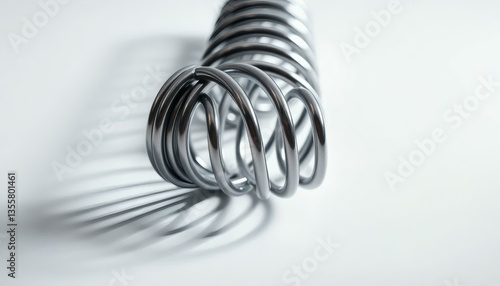 Metallic Spring Coil at White Surface Creates Shadow Minimalist Composition