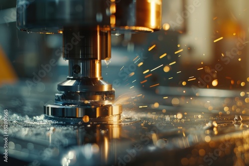 Metalworking CNC milling machine. Hi-technology machining concept.