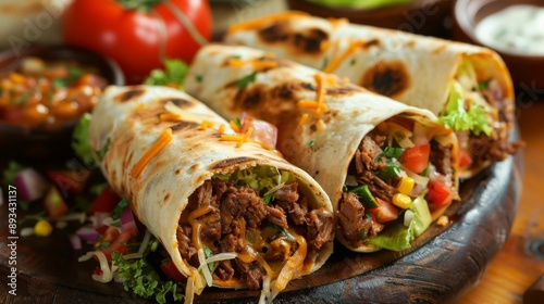 Mexican burritos stuffed with beef and salad.