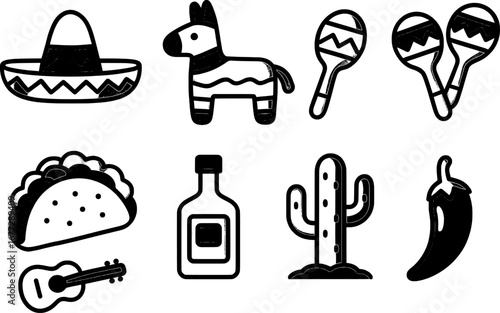Mexican Culture Icon Set – Colorful Flat Vector Illustration