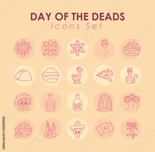 Mexican day of deads free form line style collection of icons vector design