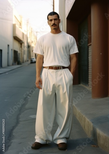 Mexican man with Mustache standing footwear fashion.