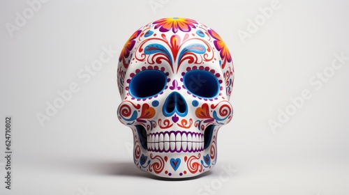 Mexican Sugar Skulls on White Background, Day of the Dead, Halloween Dia De Los Muertos. Generative Ai