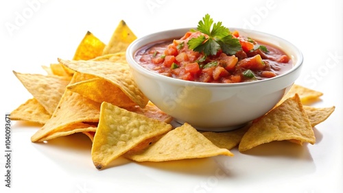 Mexican tortilla chips and salsa on white background
