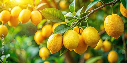 Meyer Lemons on Tree Branches - Vibrant Citrus Fruits in Lush Greenery, High Depth of Field Photography for Culinary and Gardening Themes