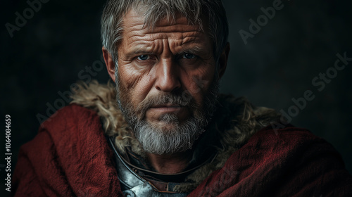Mężczyzna w stroju Wercyngetoryksa, z długimi, falującymi włosami i zbroją, która emanuje potęgą i siłą które oddają ducha starożytnej Galacji.