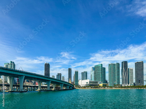 Miami skyline, Bayside bridge, boat view, Florida, USA