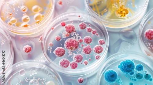 Microbial Diversity in Petri Dish, an intricate illustration showcasing various microorganisms developing unique, pale colonies, highlighting their growth patterns and interactions.