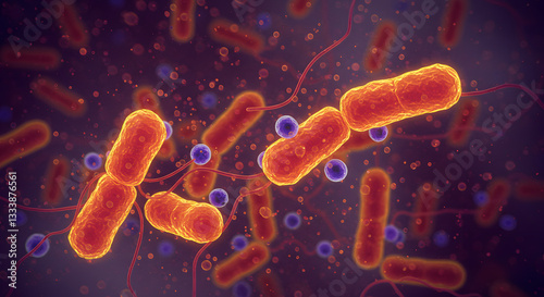 Microbial Ecosystem: Fluorescent Rod-Shaped Bacteria and Spheres in Dark Matrix