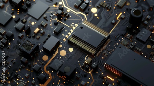 Microchip 3D illustration on black background