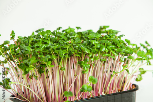 Microgreens are vegetable greens harvested just after the cotyledon leaves have developed.