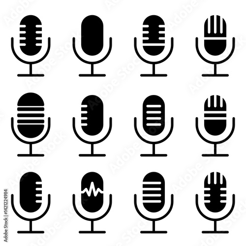 Microphone Icon Set. Different Microphone Collection. Symbol Of Podcast Isolated on white background. Vector Illustration.