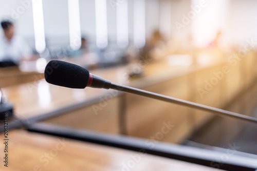 Microphone over the blurred business forum or Conference Training Learning Room Concept, Blurred background